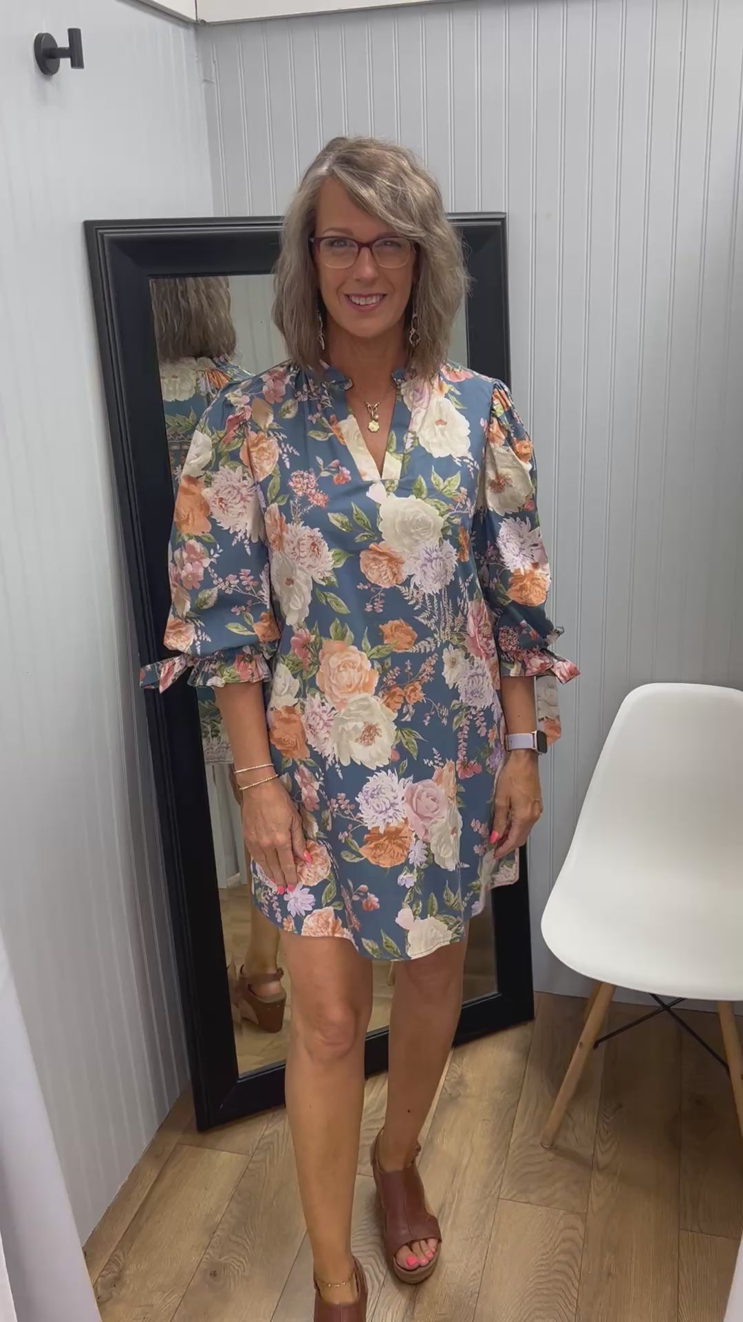 - Slate Blue Floral Dress